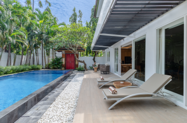 Ideally located between Seminyak and Canggu, Villa Bidadari is very close to all sorts of restaurants, cafes, shops..etc. Set a hundred meters from the main road, our property is very quiet and offers a very peaceful scenery with a nice tropical garden and a large private pool. A lovely gazebo in the back of the garden is perfect for some relaxing reading or a famous Balinese massage. Both bedrooms upstairs open onto a large balcony, ideal for yoga or gym in the morning as well as sunset drinks.