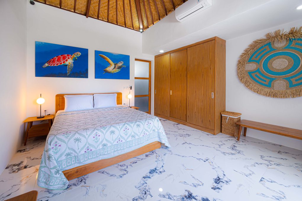 Villa Kembar is a modern 3-bedroom villa located just a 5-minute walk from the beach. Perfectly situated in a lively yet convenient area, it’s only 1 minute on foot to nearby shops, and right in front of the villa you’ll find a Thai restaurant, a pizzeria, and a souvenir shop.