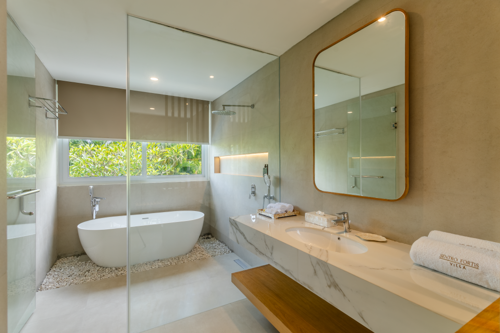 Designed with natural materials and generous volumes, this villa stands out for its large enclosed living room, bright open spaces, and high-end finishes, creating a refined and comfortable living environment.