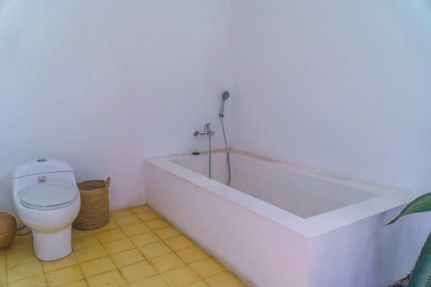 This villa boasts three exquisite bedrooms, each furnished with quality linens, including two double beds and one twin bed. The three downstairs bedrooms each have their own bathrooms, complete with both a shower and a bathtub.