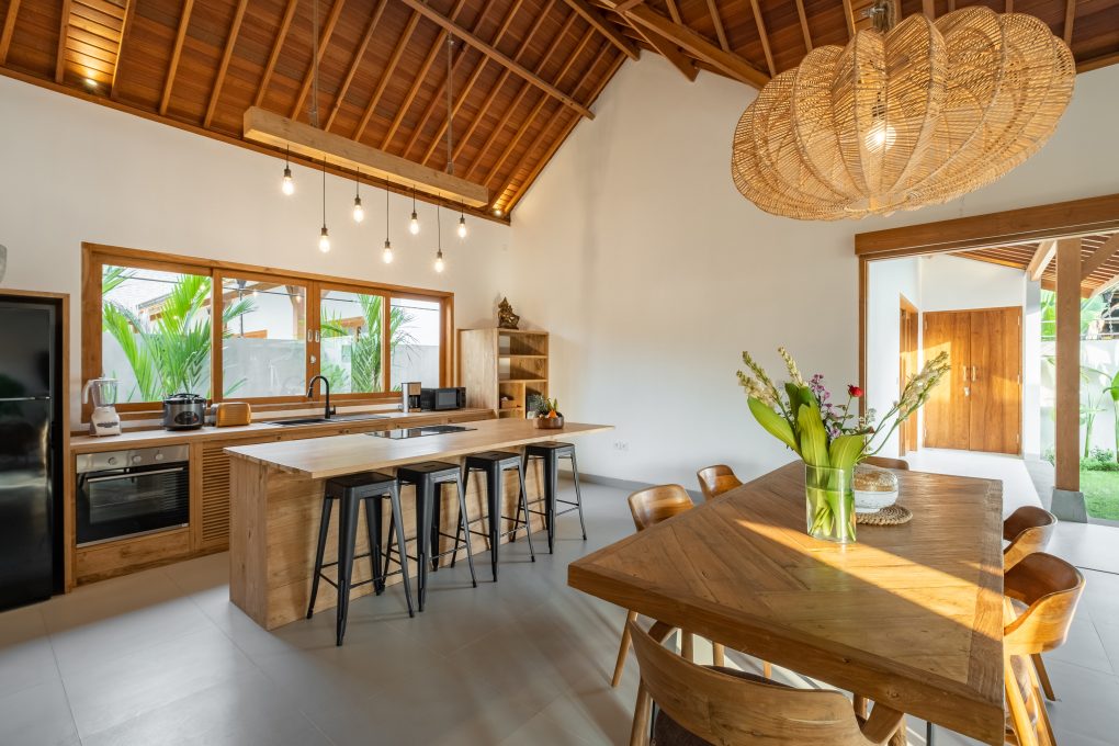 Welcome to this charming 3-bedroom villa nestled in a tranquil area near Umalas, Bali. Experience the true essence of a holiday getaway in this newly built villa, where you’ll find a spacious living room seamlessly connected to a fully equipped open kitchen. Bask in the tropical vibes as you choose to either open up the living area to your private pool or keep it enclosed and enjoy the cool comfort of air conditioning.