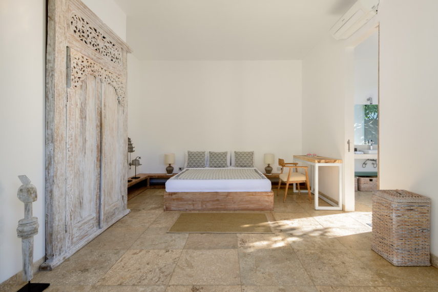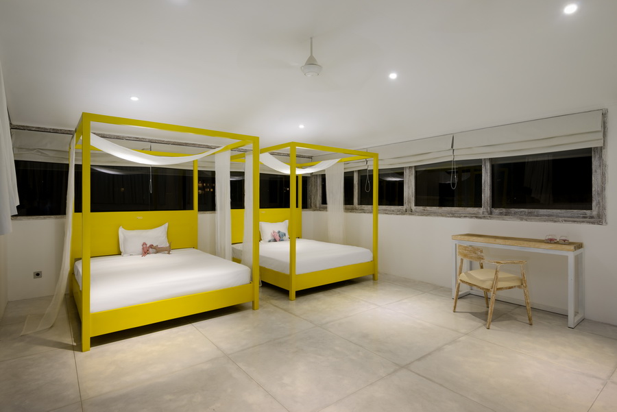 Villa Meimei offers a large space of 450 Sqm and a living room size of 130 Sqm. The master Bedroom measures 41 Sqm and the 2 others bedrooms are equal to 35 Sqm. In the mezzanine floor, there is another bedroom of 50 Sqm. All bedrooms have their own beautiful en-suite bathroom. Moreover, the pool deck and the garden area are in a spacious area of 175 Sqm